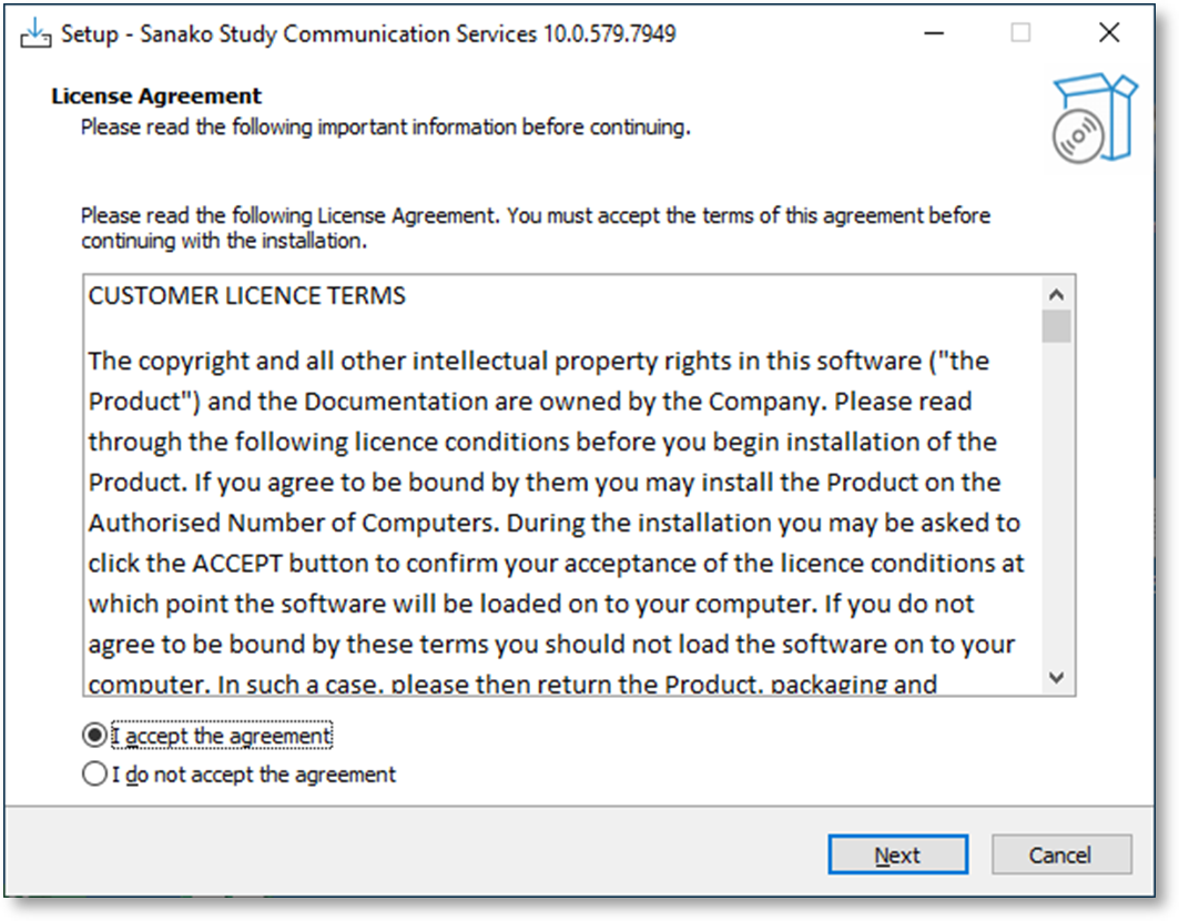2. Acceptez les termes de la licence et cliquez sur Next pour poursuivre l’installation.