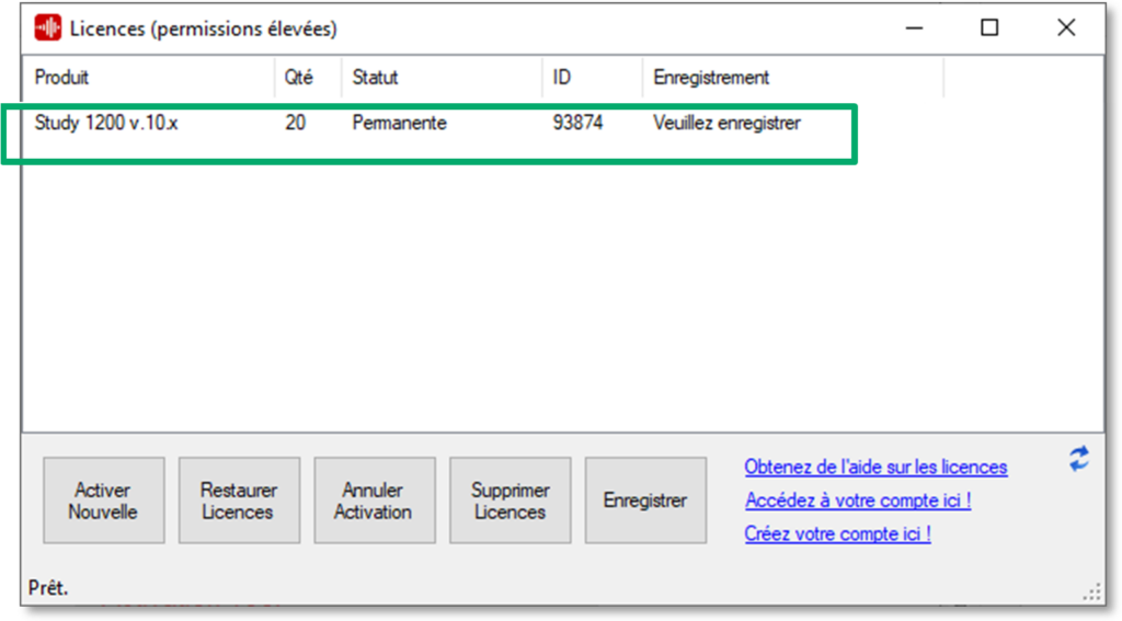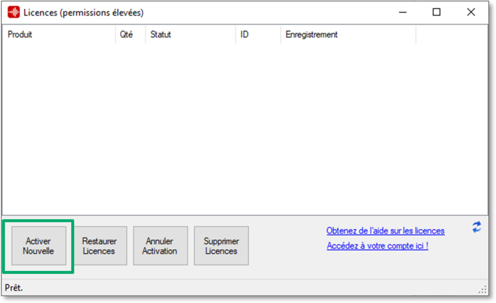 8. La fenêtre de gestion des licences apparait ensuite.