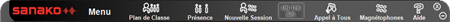 La barre d’outils Sanako Lab 100 est la barre horizontale de la partie supérieure de la fenêtre principale. Sur cette barre d’outils, vous trouverez les fonctions de base du programme : création et sélection d’une classe, gestion des absences et création de sessions. De plus, vous pouvez accéder à l’aide en ligne Sanako Lab 100 et diffuser des commentaires à tous les élèves via le bouton « Appel à Tous ».
