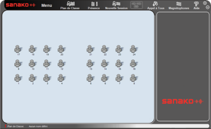 Sur le côté gauche de la barre d’état, vous trouvez le nom du plan de classe utilisé. Pour réutiliser un plan de classe, cliquez sur le bouton Plans de Classe de la barre d’outils.